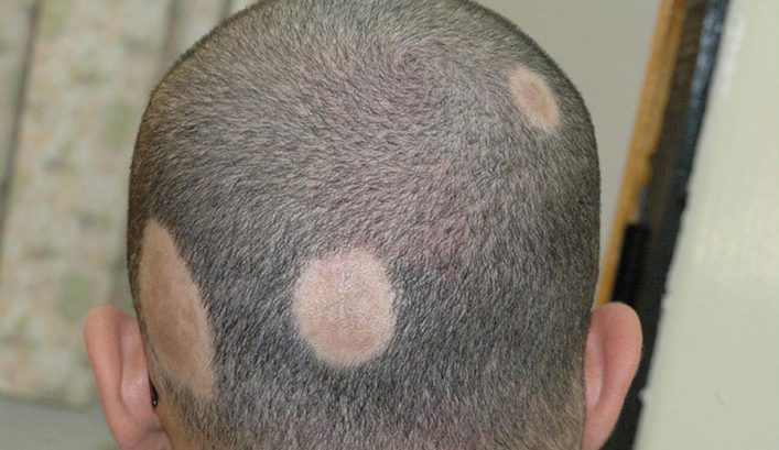 - Patchy hair loss: Often, the hair loss will start with one or a few coin-sized smooth bare patches appearing, or sometimes people first notice its onset when they discover clumps of hair on their pillow or shower drain. While the hair loss typically appears on the scalp, it can affect eye lashes, eyebrows and any part of the body.